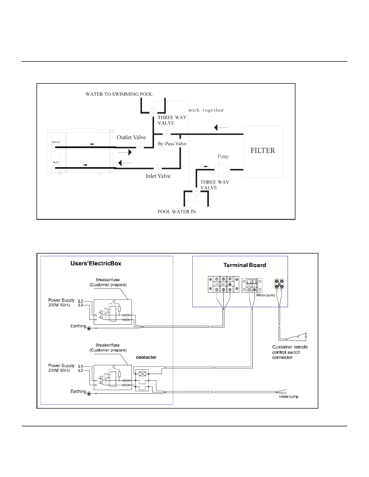 Note: The swimming pool heat pump must be grounded.