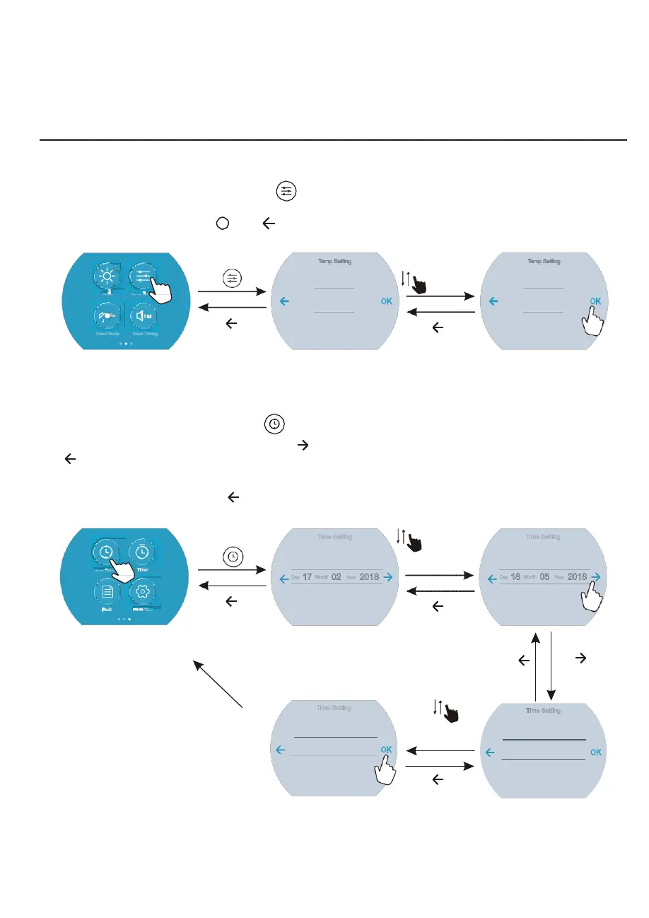In the Second function interface,click “ ” to enter into the Temp Setting interface, slide up or