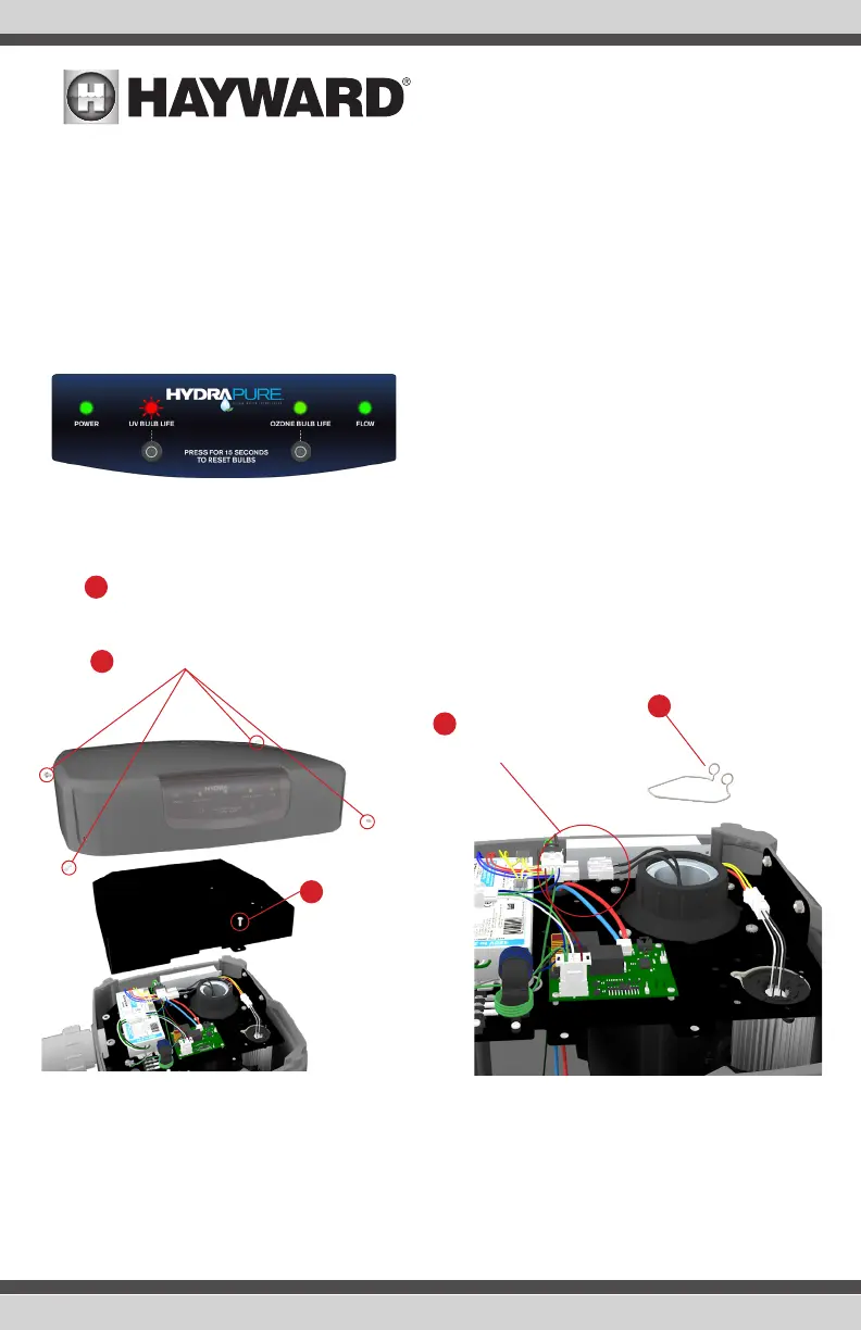 WARNING: Turn off all power to the HydraPure unit and pool pump. Before proceeding allow at least
