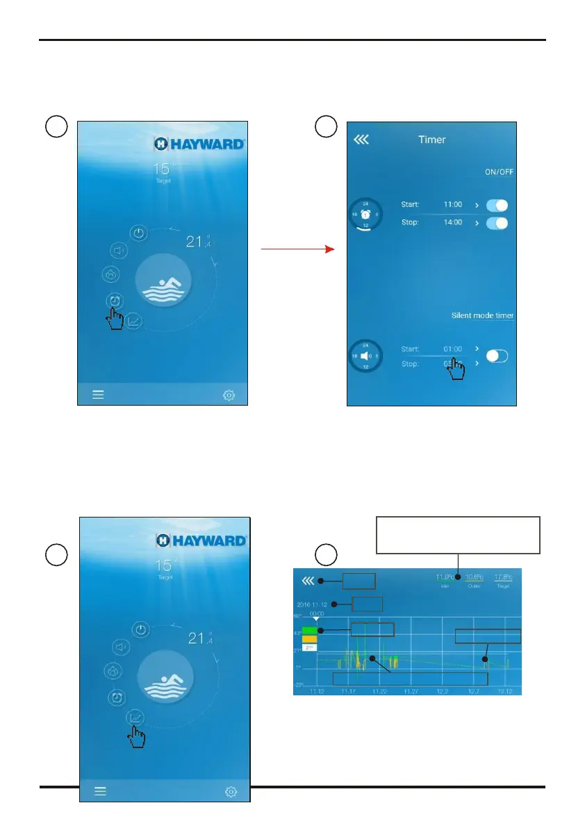 b.Avec deux doigts, vous pouvez agrandir ou réduire la courbe de température.