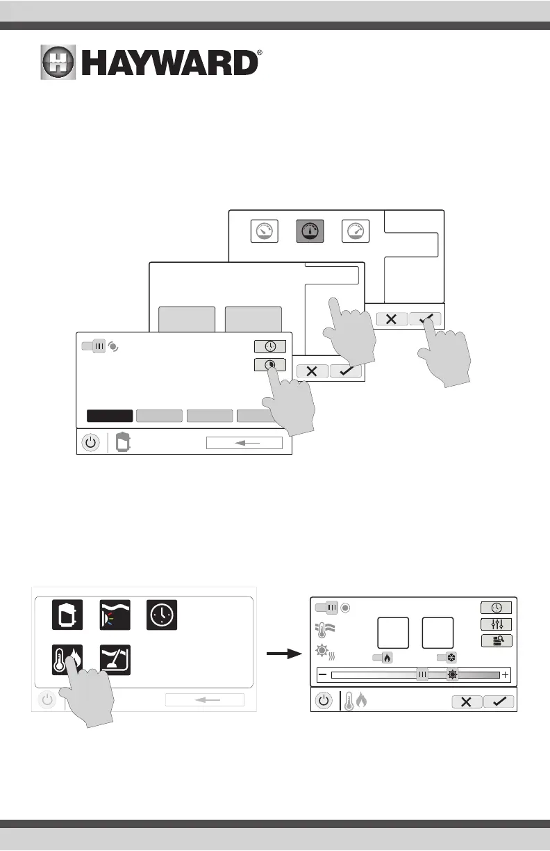 heaters/chillers for the selected Body of Water. An example of the heat/cool Control Screen is shown