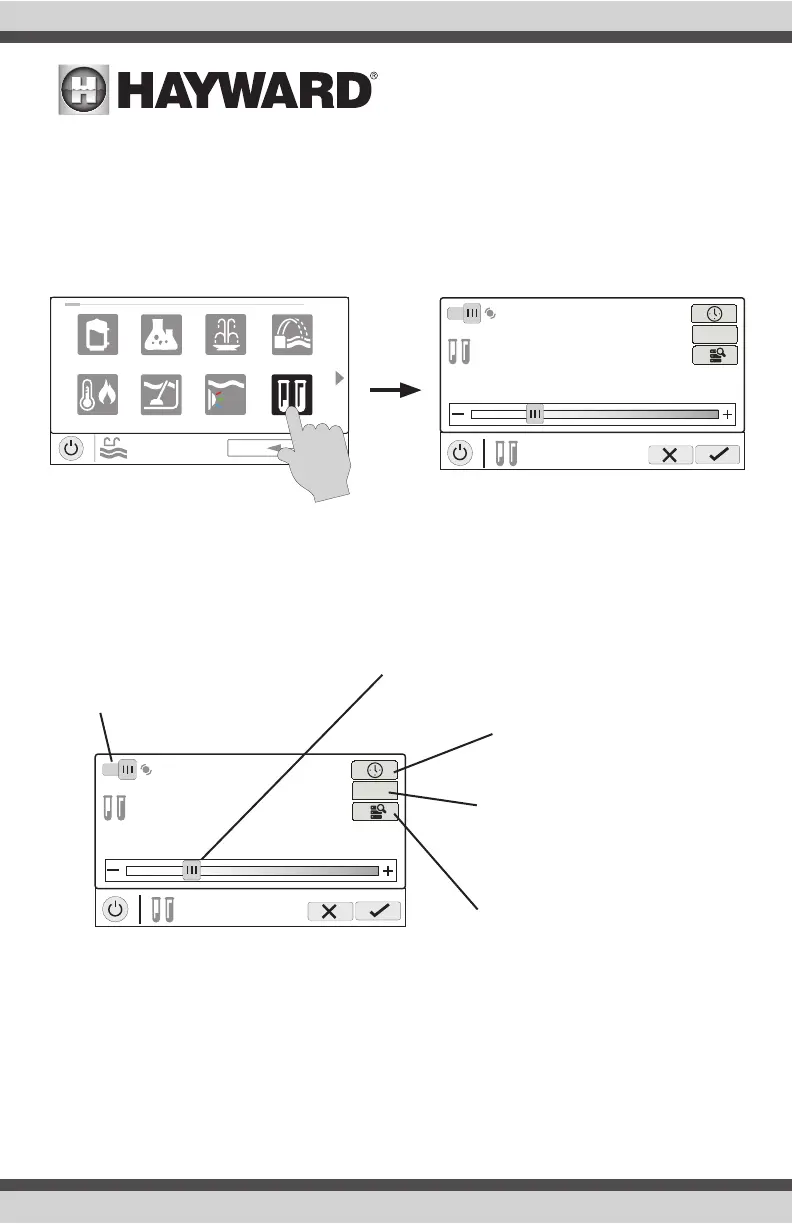 If a chlorinator has been configured in the Configuration Wizard, you will see a chlorinator icon in the