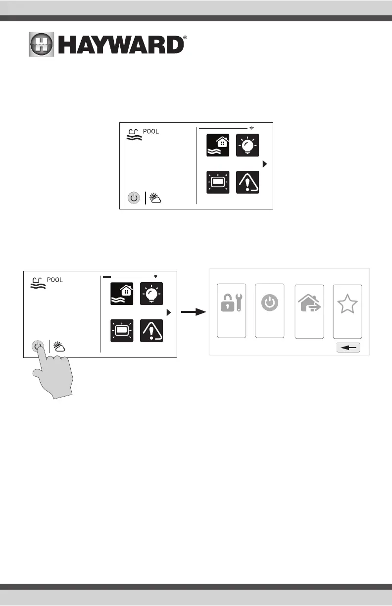 The power button is displayed at all times when the OmniHub is not idle. When touched, it offers