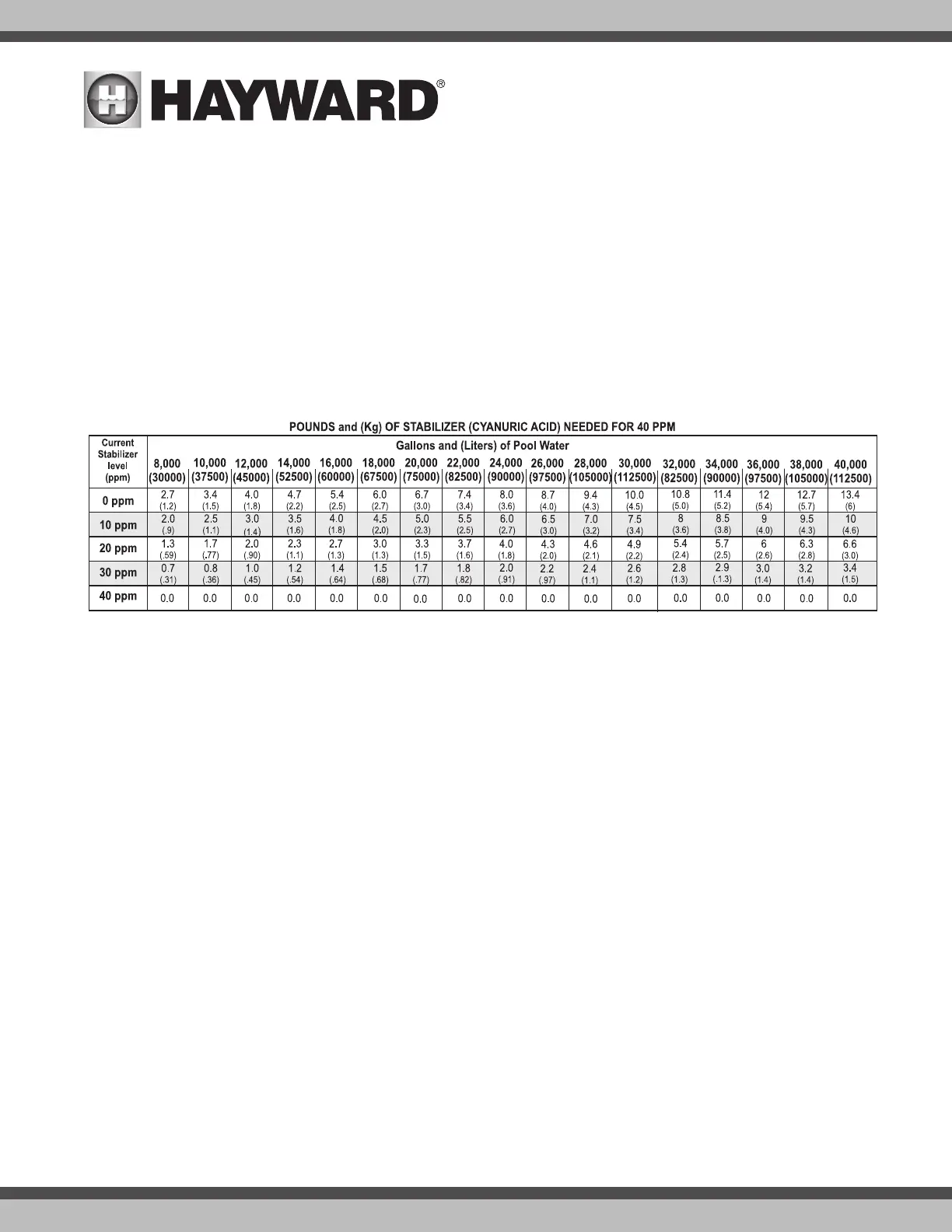 USE ONLY HAYWARD GENUINE REPLACEMENT PARTS