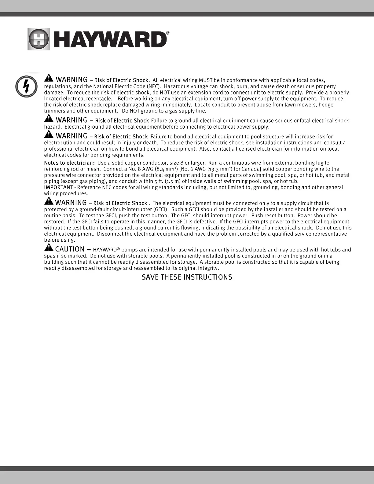 USE ONLY HAYWARD GENUINE REPLACEMENT PARTS