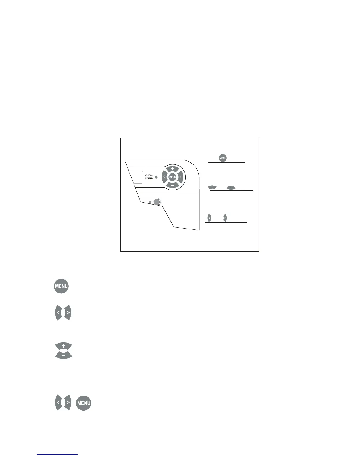 1. Press the “MENU” button to get to the desired menu. Multiple pushes of the button will