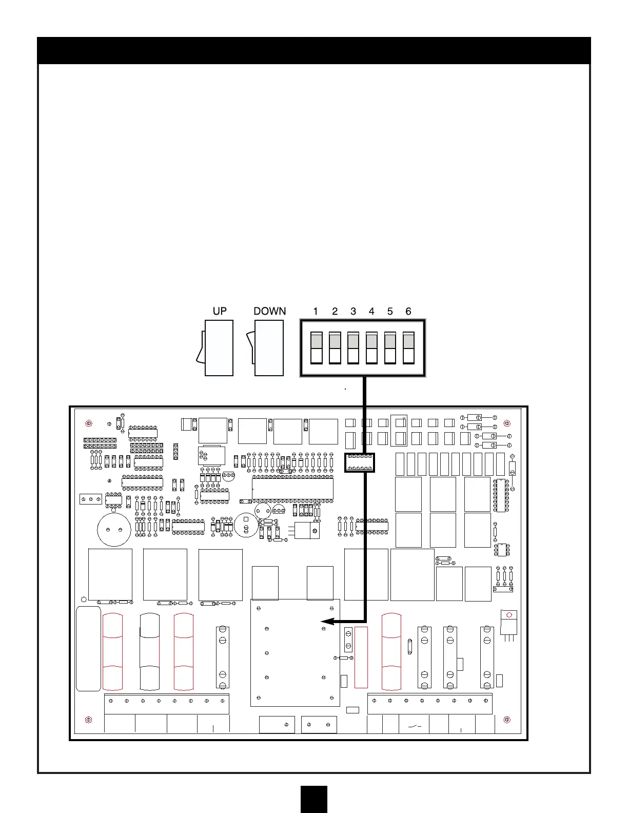 The circuit board in the Main Control Center is equipped with dip switches and a jumper. This allows the