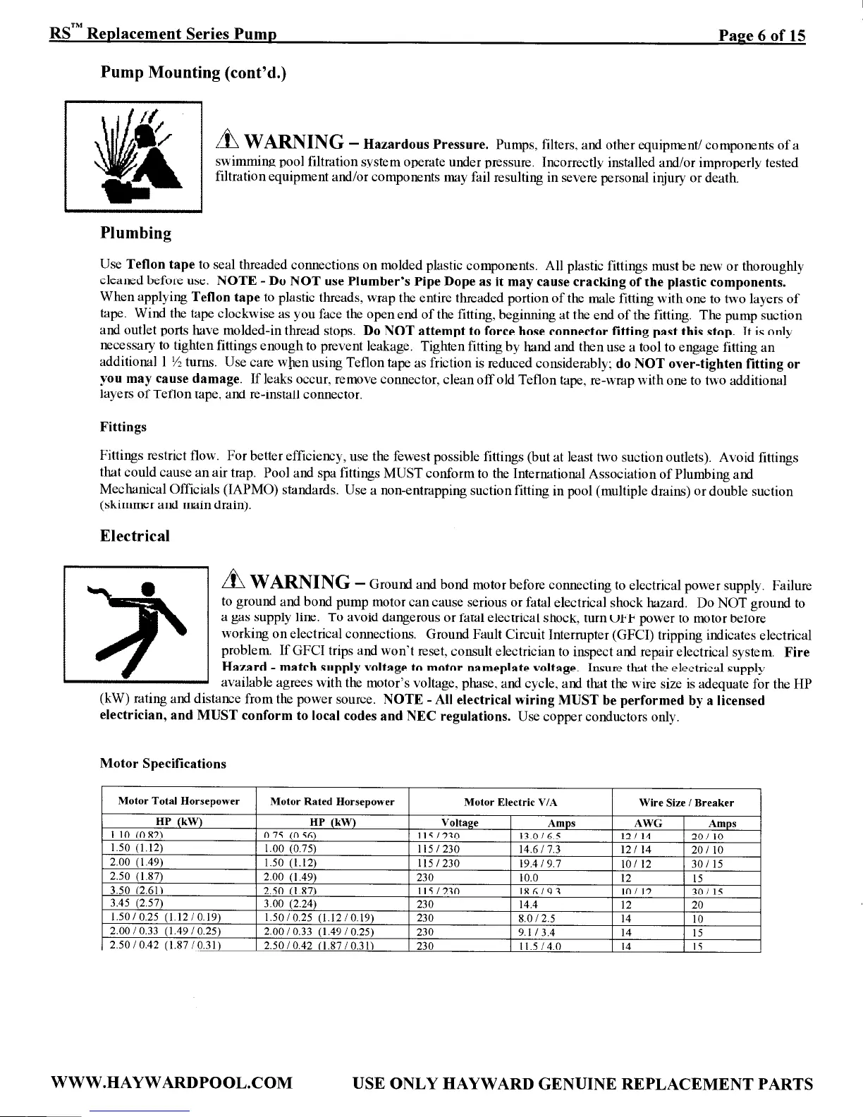 Hayward RS1502 - Electrical System and Motor