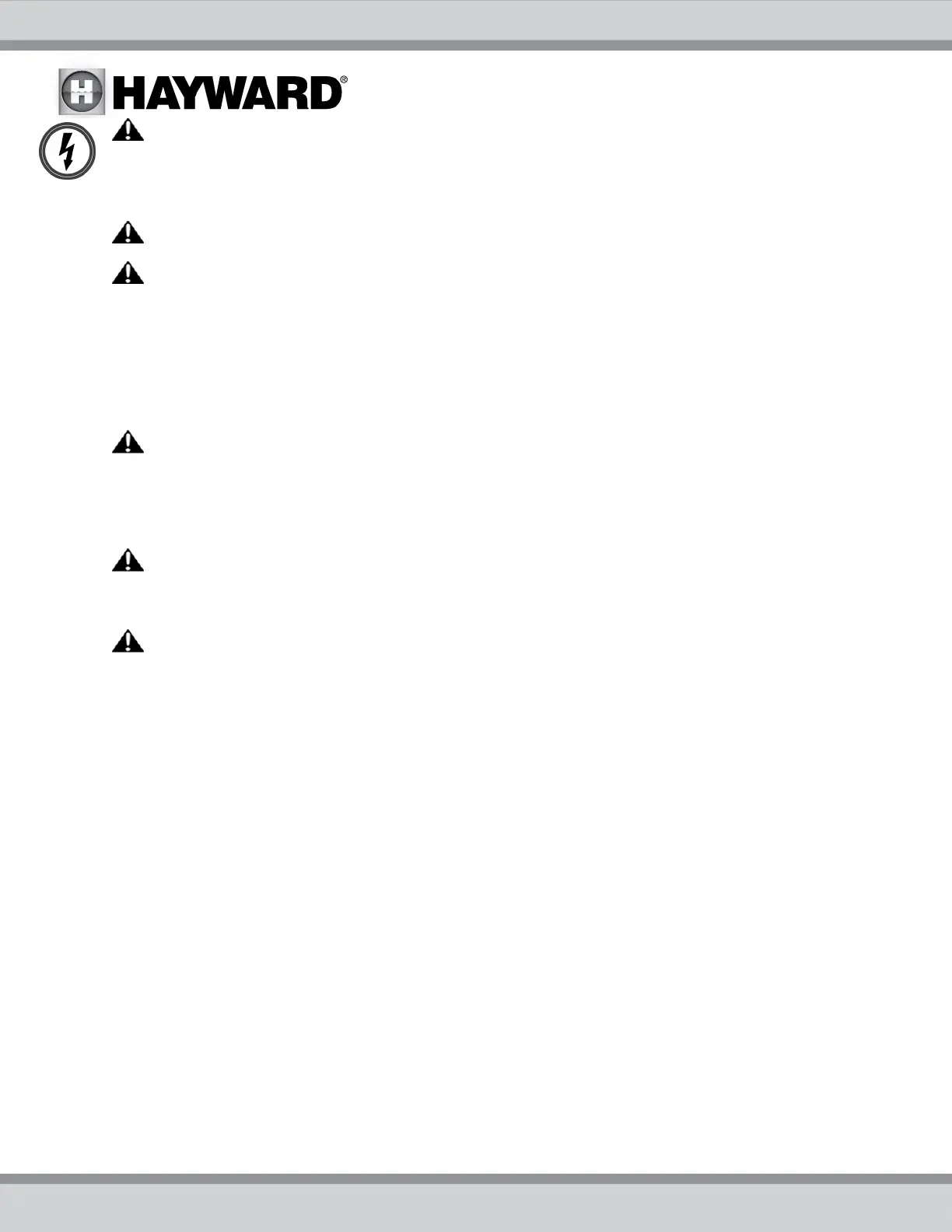 USE ONLY HAYWARD GENUINE REPLACEMENT PARTS