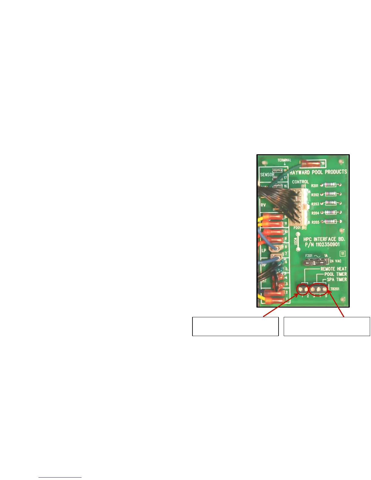 block TB201. Attach the pool wire to terminal 3, the common wire to