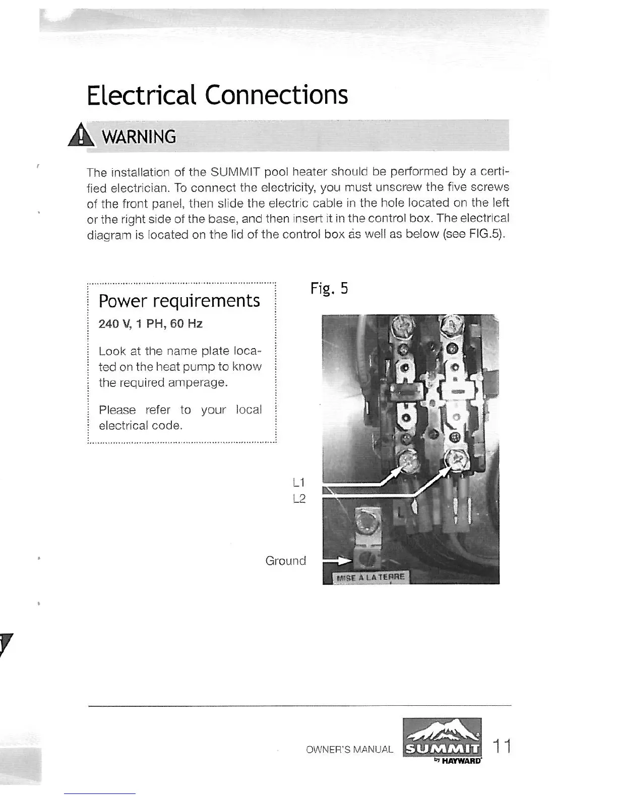 Hayward summit SUM25TA - Electrical Connections; Power Requirements