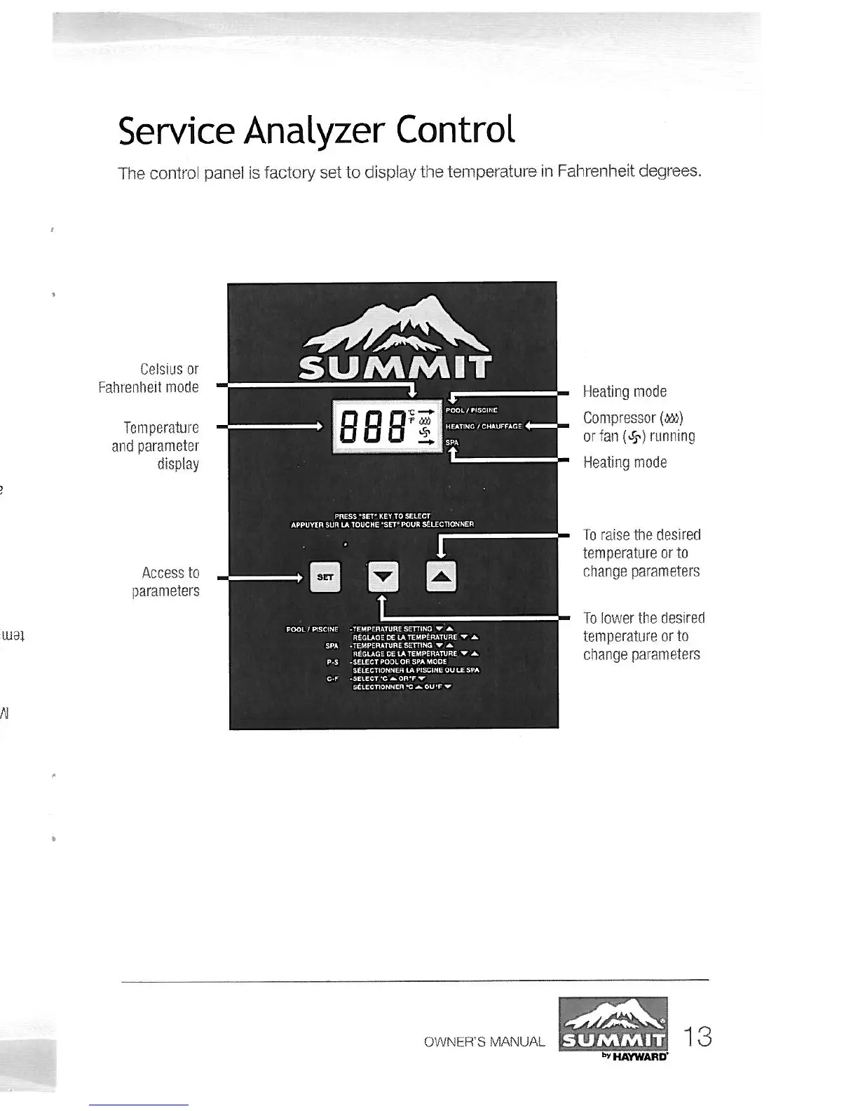 Hayward summit SUM25TA - Service Analyzer Control; Control Panel Display and Modes; Control Panel Operation; Operational Status Indicators