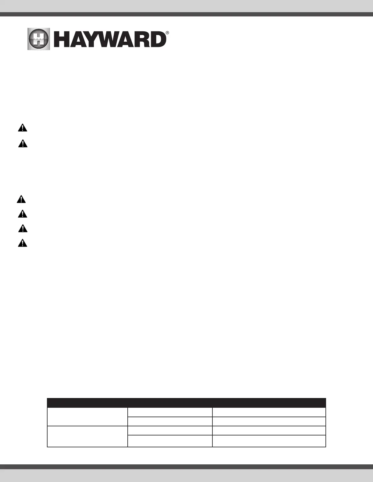 USE ONLY HAYWARD GENUINE REPLACEMENT PARTS