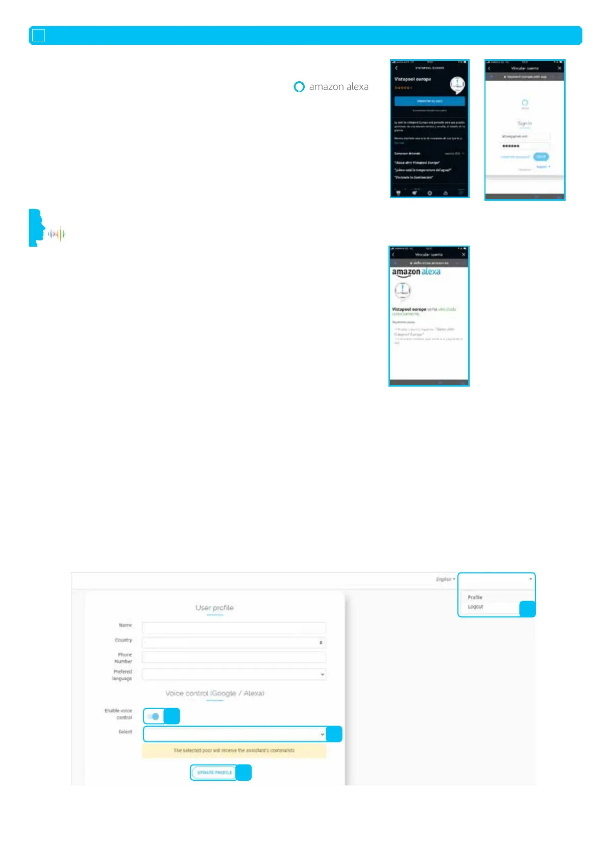 verlangt. Starten Sie Ihre App: „Alexa, mit Vistapool Europe sprechen“ und kommunizieren Sie