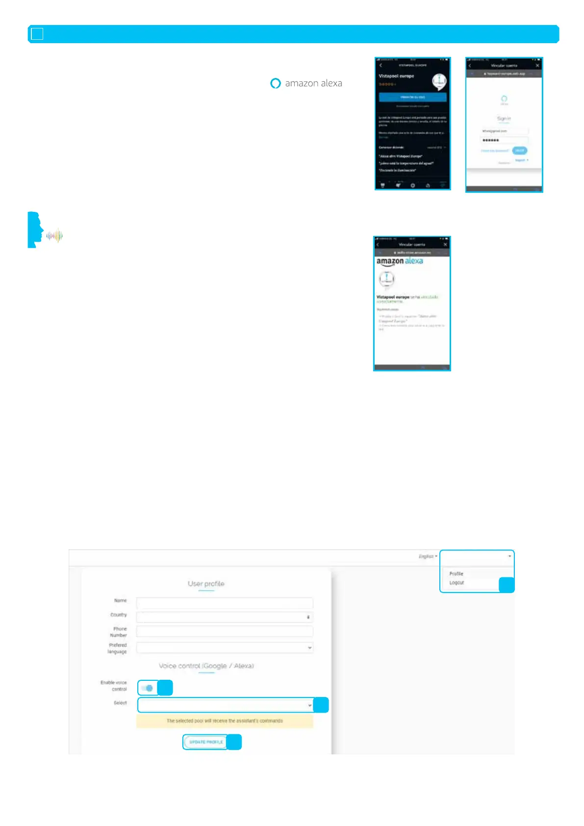 Запустите ваше приложение: «Alexa, talk to Vistapool Europe» и поговорите с вашим бассейном.