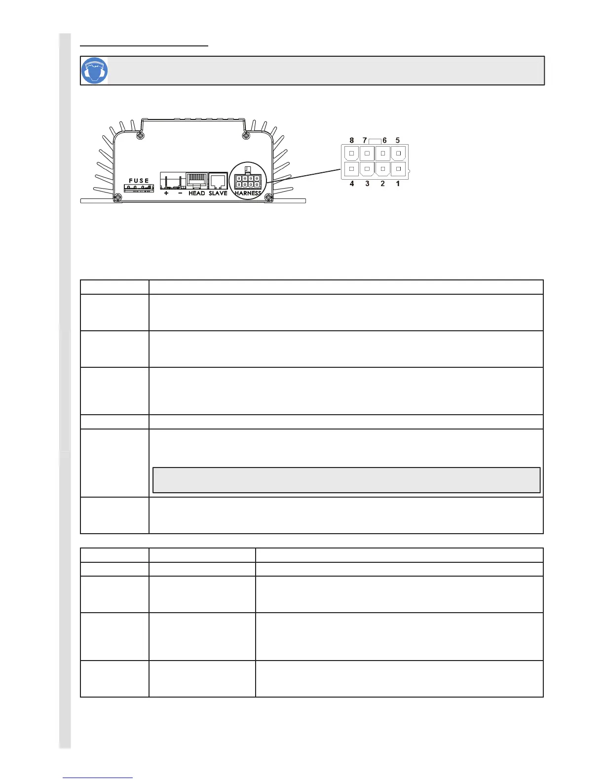 HARNESS port. Unused wires must be left unconnected and insulated.