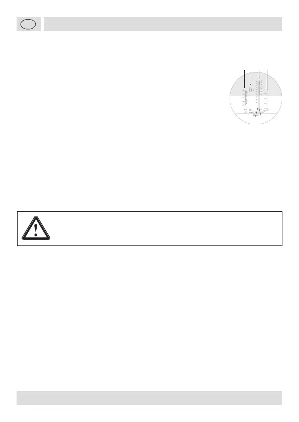 - Read off the value on the corresponding scale – a pronounced LIGHT-DARK dividing line (5) is displayed.