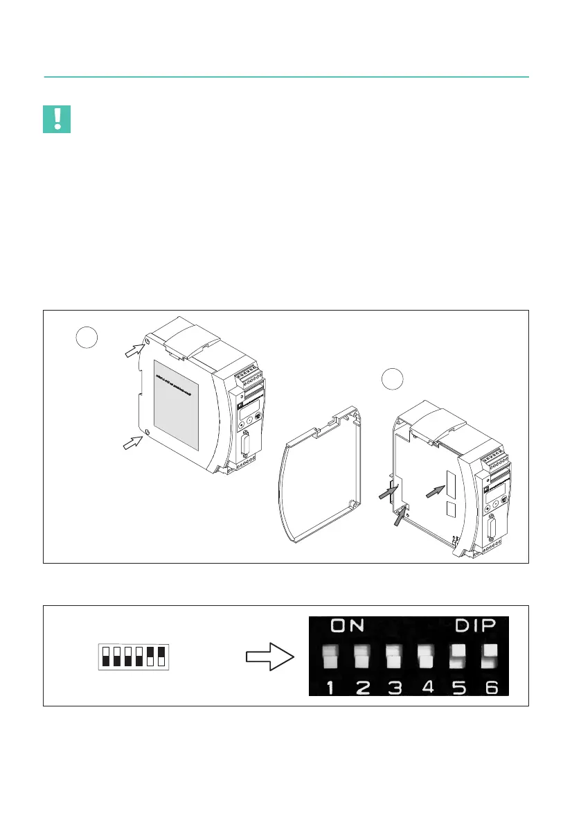 Abb. 4.1 Gehäuse öffnen, Lage der DIP‐Schalter
