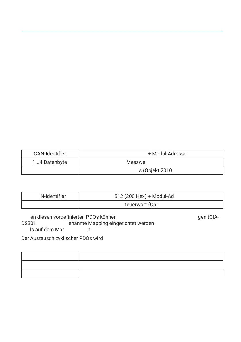 Neben diesen vordefinierten PDOs können weitere gemäß CANopen Festlegungen (CIA‐