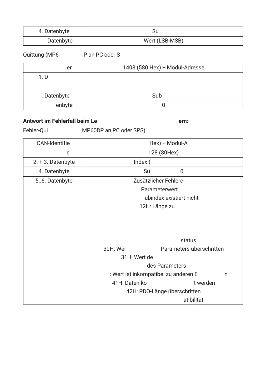Fehler‐Quittung (MP60/ MP60DP an PC oder SPS)
