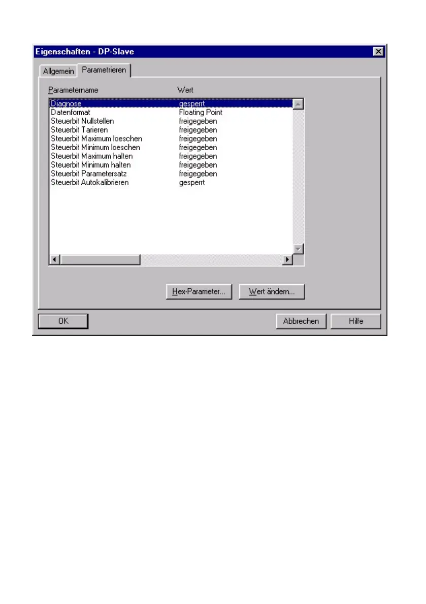 eingestellt. Das Profibus‐DP‐Parametriertelegramm legt einige Parameter für die DP‐
