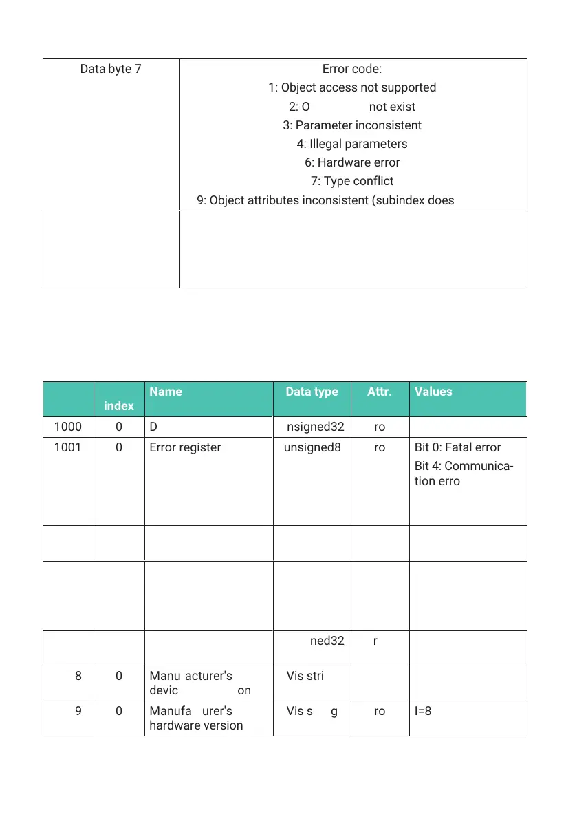 9.4 Object dictionary (communication profile area)