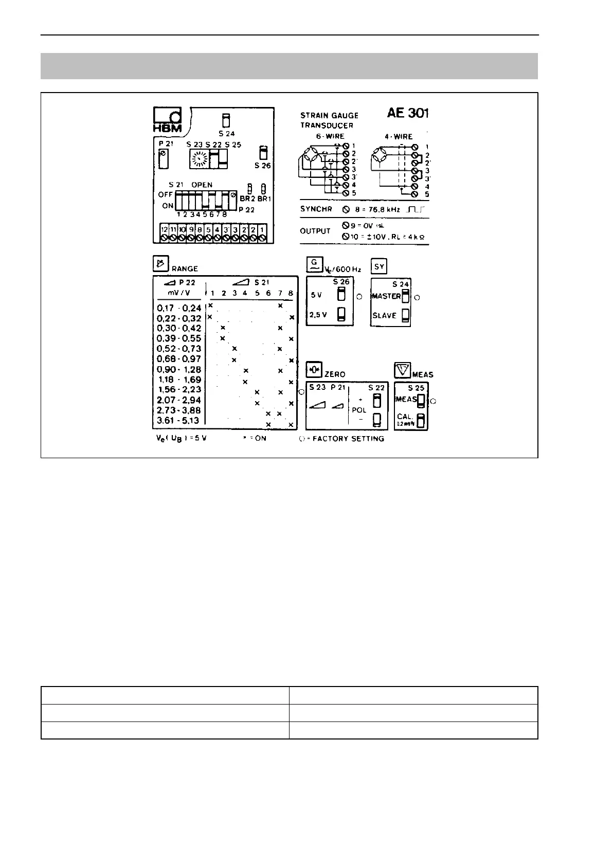 Use switch S26 to select the bridge excitation voltage V