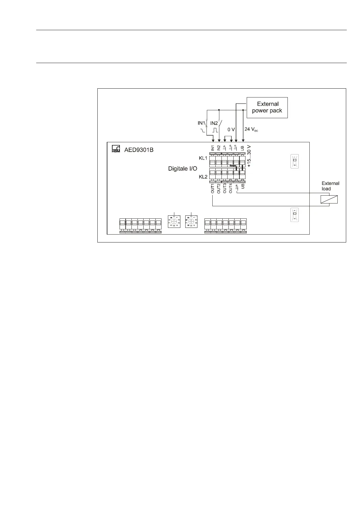 Fig. 3.4-2: Connection of digital inputs and outputs, inputs and external power pack not electrically