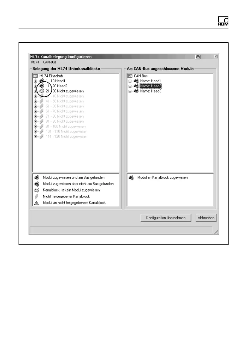 S Zwei CANHEAD‐Geräte wurden den ersten beiden Kanalblöcken zuge