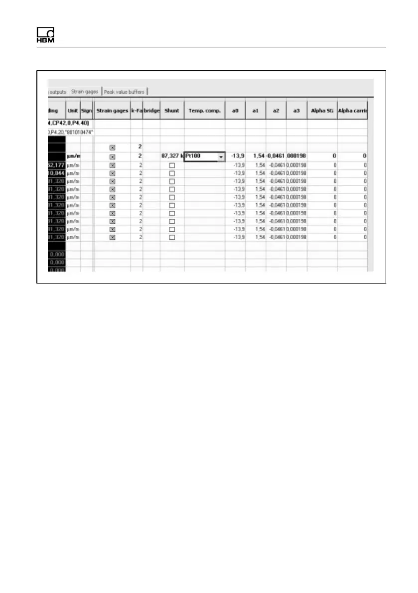 - With the Pt100 method, the polynomial coefficients from the strain gage