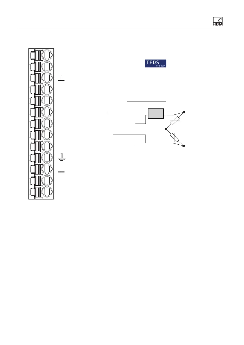 Strain gage half bridge in 6-wire configuration (zero-wire TEDS)