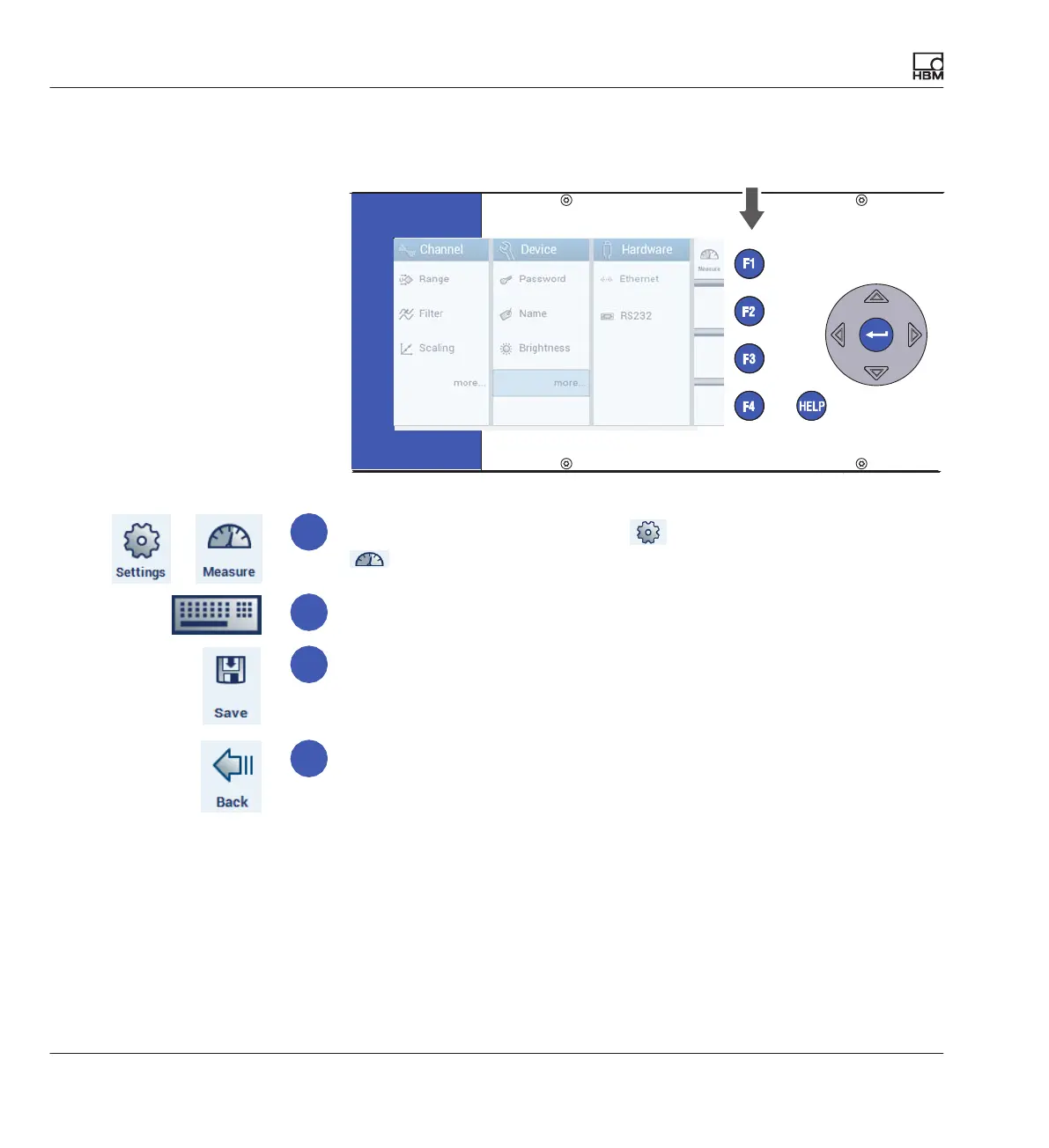 Function keys in measuring mode (Measure)