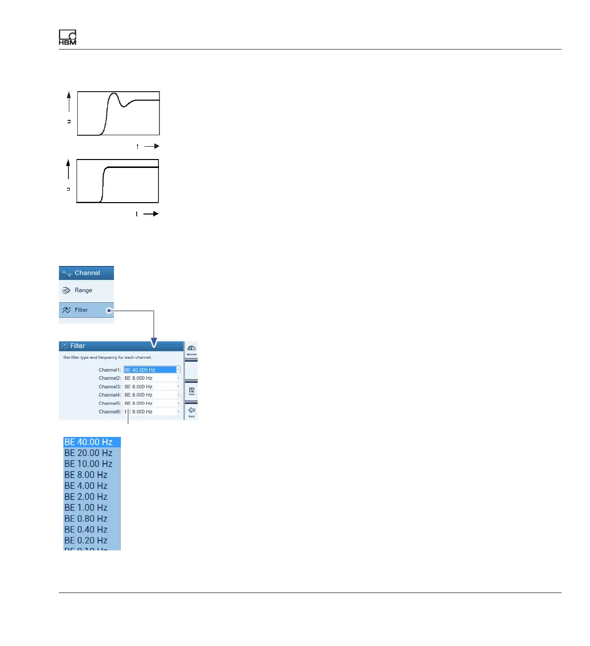 ► Select BE, 1 Hz for the individual channels (corresponds to damping of