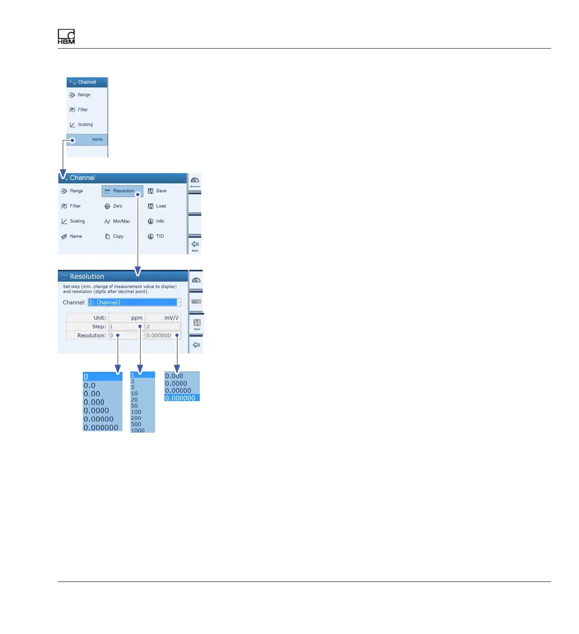 7.2.7 Configuring the measured value display (Resolution/Step)