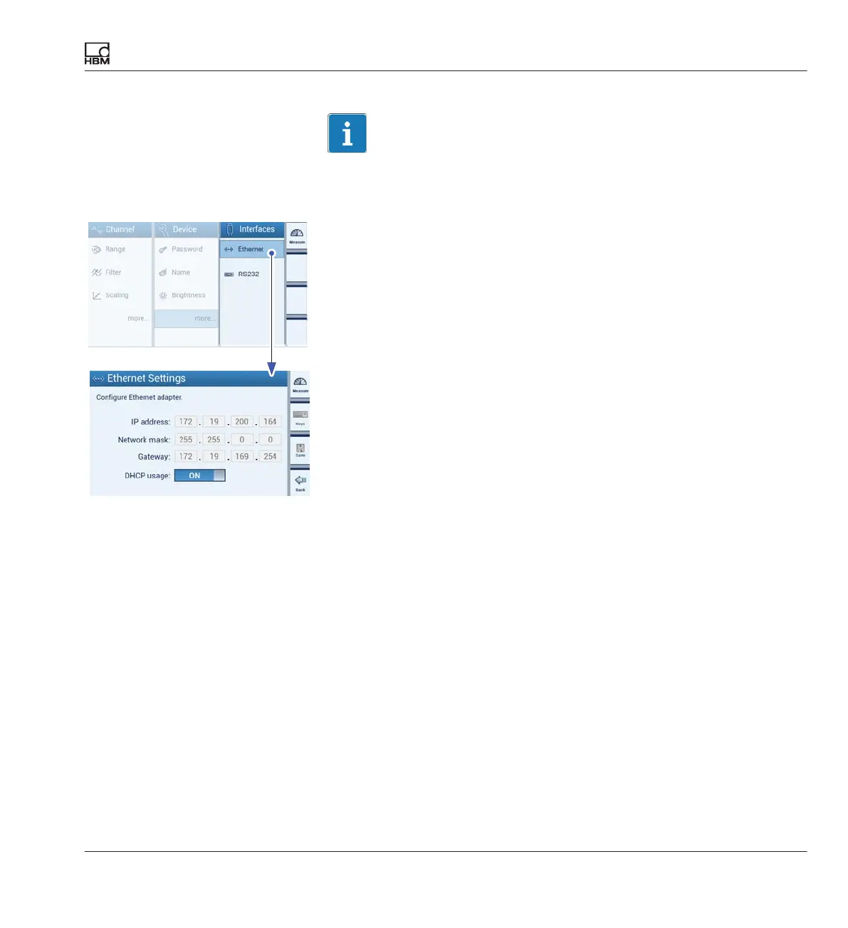 The values for “IP address”, “Network mask” and “Gateway” are network-
