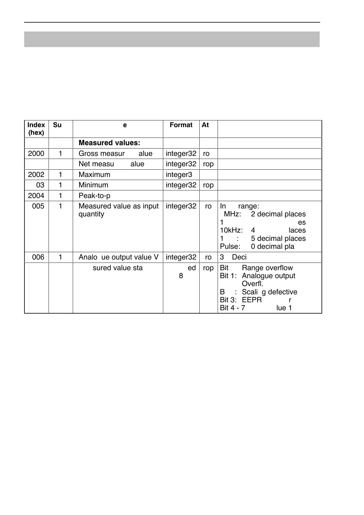 Parameters relating to measured values are coded with figures scaled in the