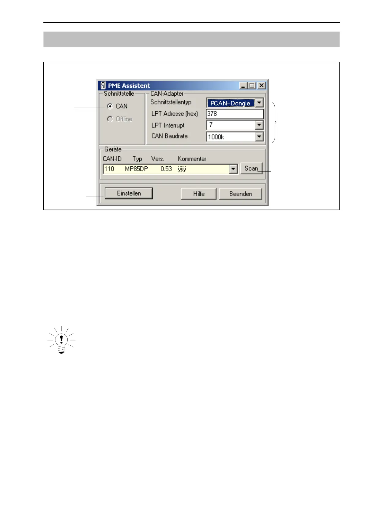1. In the <Schnittstellentyp> dropdown list box, select the mode PCAN