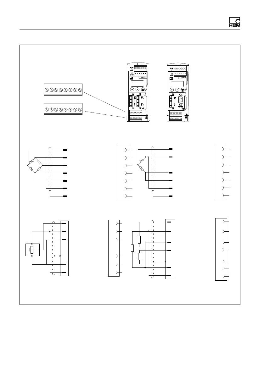 Fig. 5.4 Connecting different transducers in carrier-frequency amplifier mode