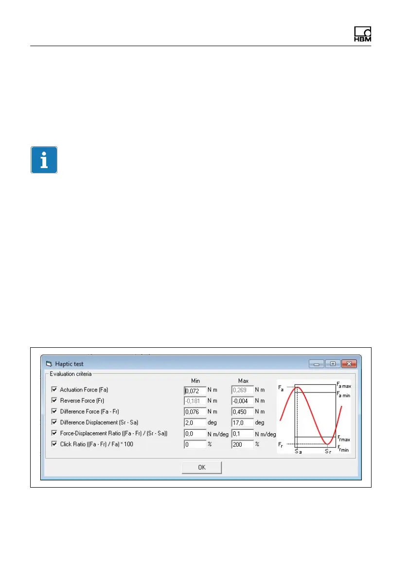 that is, the “feel” on actuation. You can enter the characteristic values required