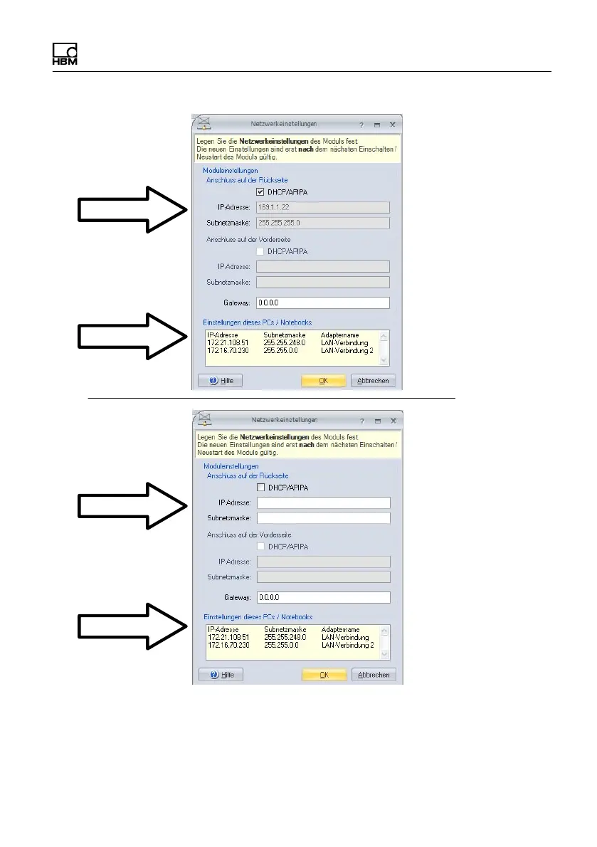 Fig. 7.5 Example of settings for a direct connection
