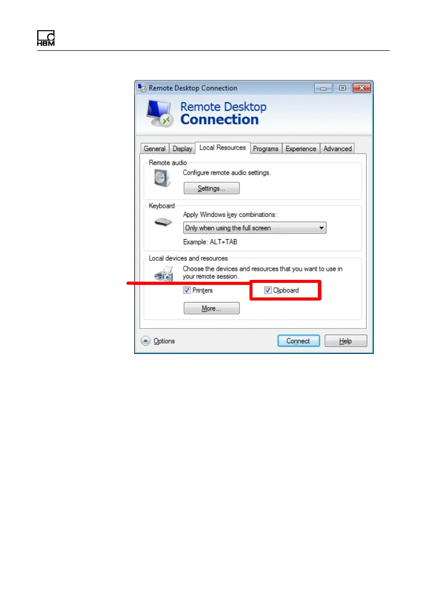 Fig. 6.6 Remote desktop connection local resources tab