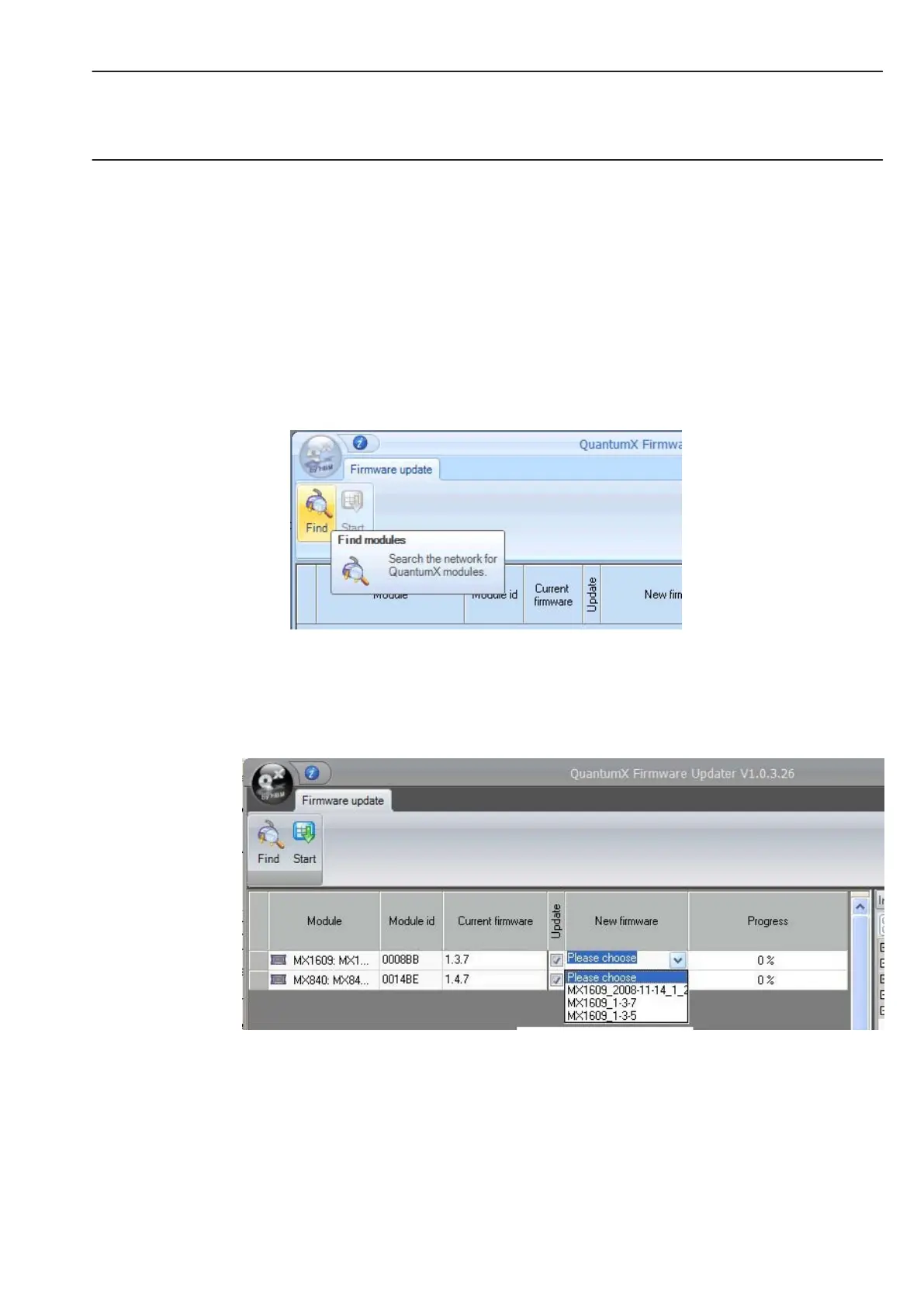 • Close all open HBM software, install the new software and start the QuantumX Firmware