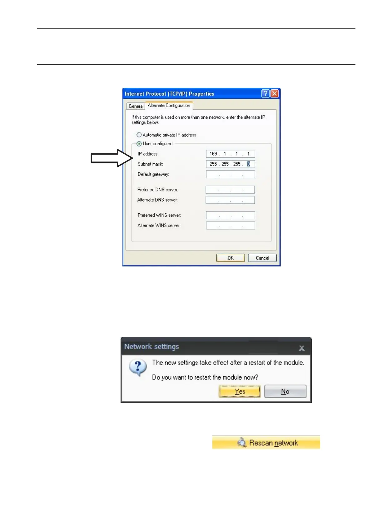• Confirm the settings with the ”Yes” button, the module is then restarted with the current