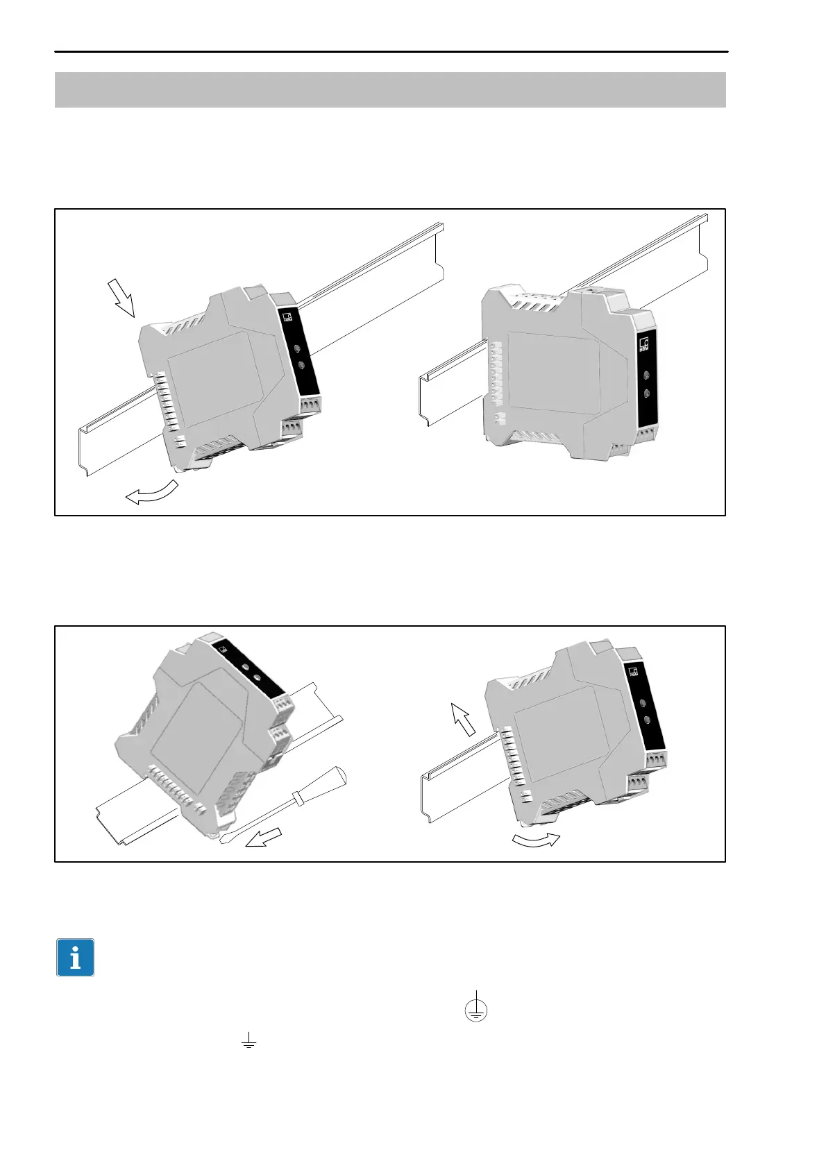 Die Montage des Gehäuses erfolgt auf einer Tragschiene nach DIN EN 60715.