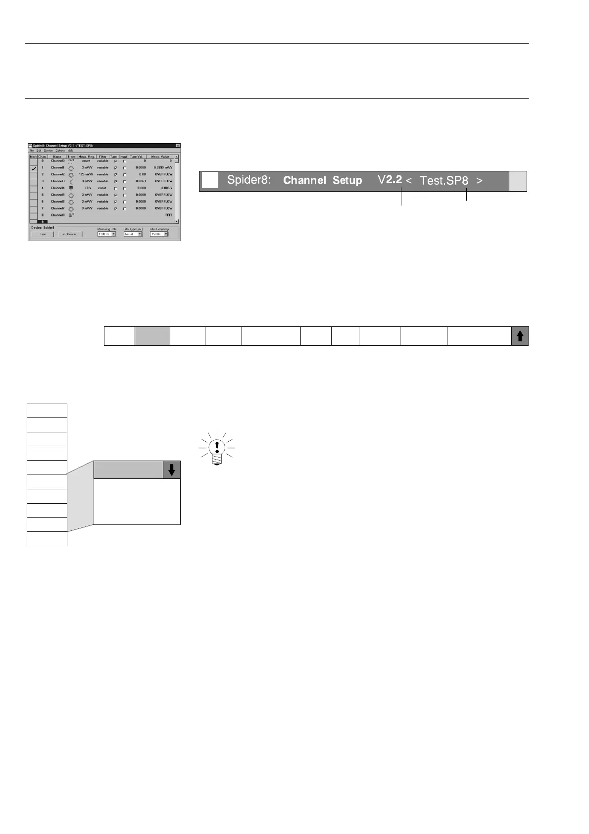 Configuring the Spider8 with the Setup program Ý Channel-specific menus