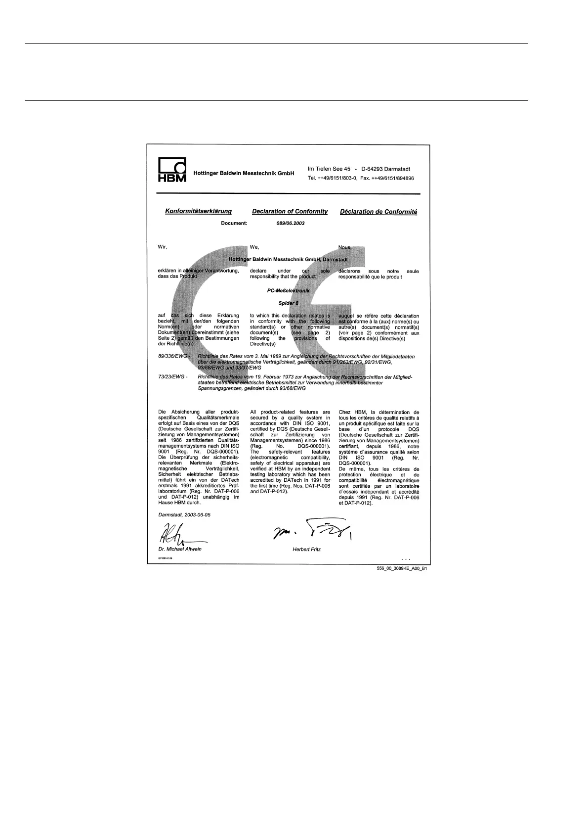Declaration of conformity