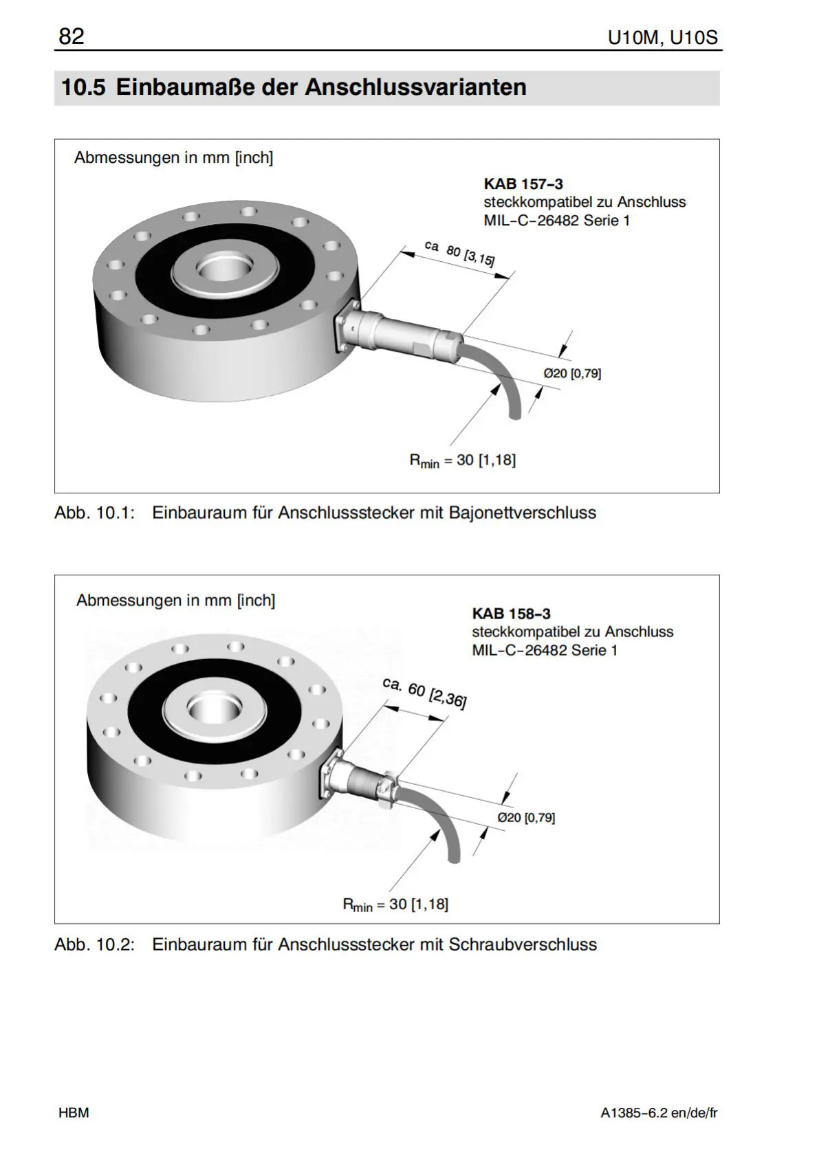 HBM U10M - Einbaumaße der Anschlussvarianten