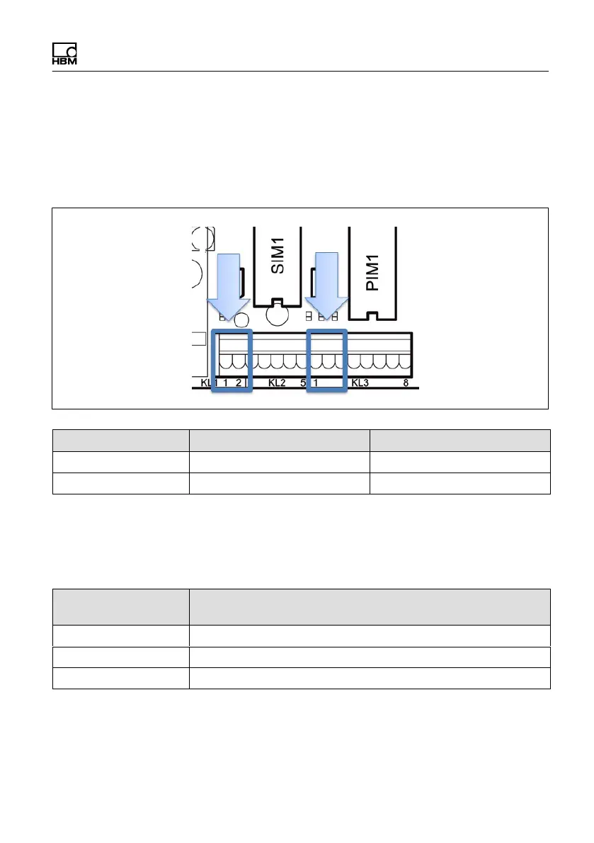 An den Klemmen KL1 (Klemme 1, 2) und KL3 (Klemme 1, 2) werden 12 V als