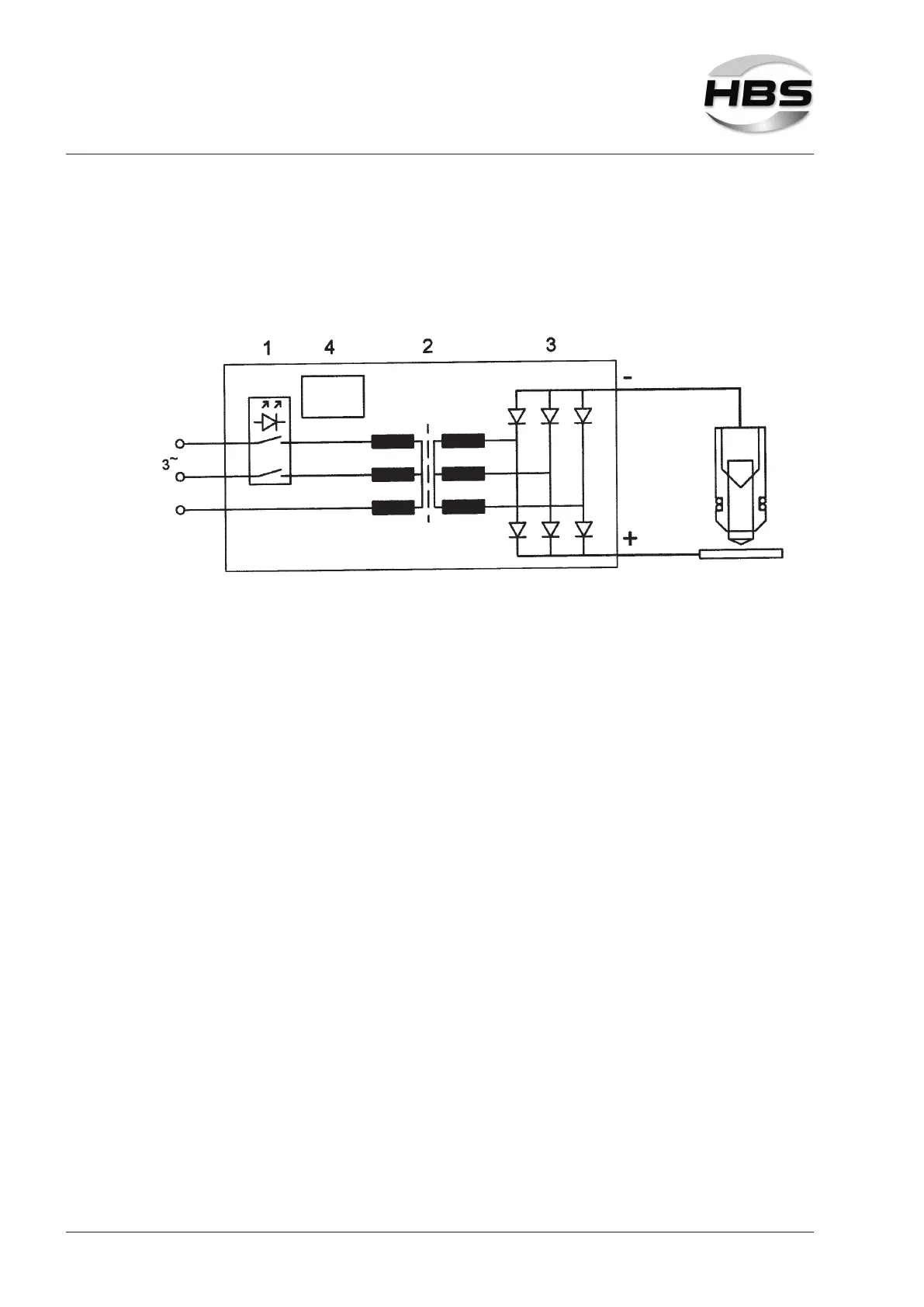 Mains alternating current is transformed in the transformer (2) and converted in the