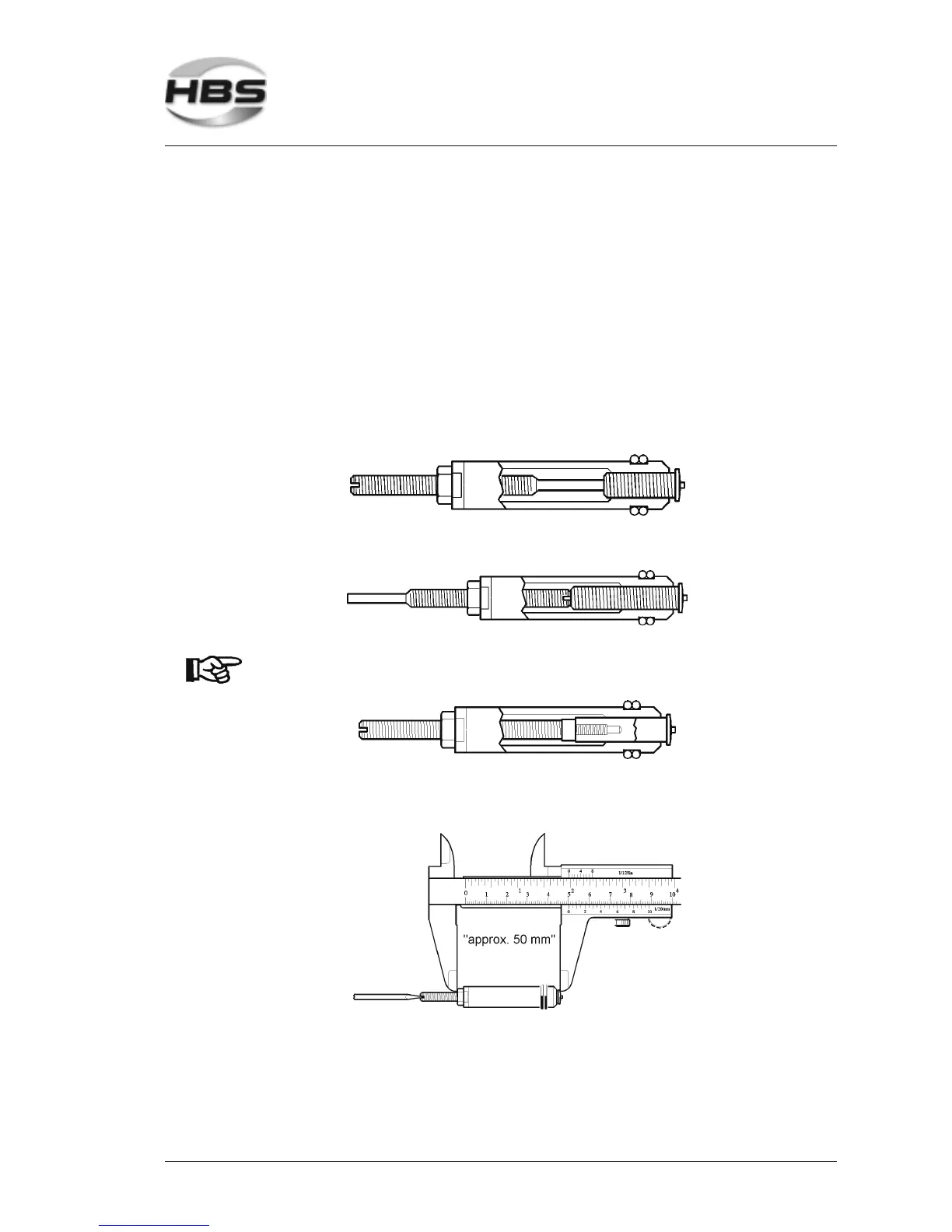 Adjust the standard stop pin in such a way that an overall distance of 50 mm is
